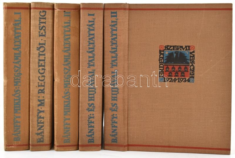 Gróf Bánffy Miklós könyvek: Megszámláltattál... I-II. kötetek. És hijjával találtattál... I-II. kötet. ReggeltÅ‘l estig. Kolozsvár, Erdélyi SzépmÃves Céh. Kiadói egészvászon-kötések.