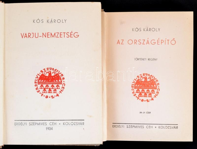 https://www.darabanth.com/en/375-Online-auction/375.0/Books/Books-Other-rarities~1000017/Kos-Karoly-konyvek-Az-orszagepito-Varju-nemzetseg-Kolozsvar-Erdelyi-Szepmives-Ceh~II2195606