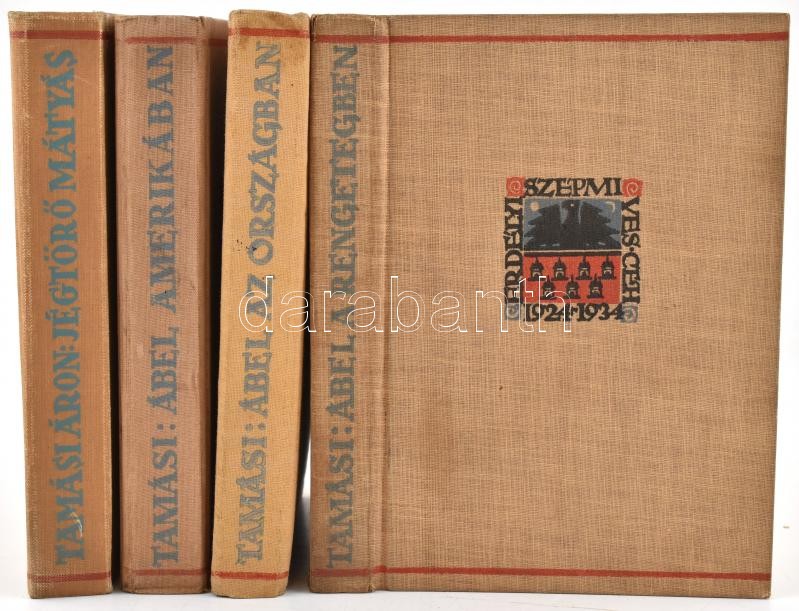 Tamási Áron könyvek: Ábel a rengetegben. Ábel az országban. Ábel Amerikában. Jégtörő Mátyás. Kolozsvár, Erdélyi Szépmíves Céh. Kiadói egészvászon-kötések.