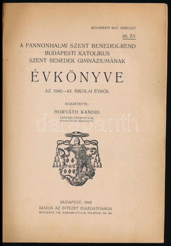 1943 Pannonhalmi Szent Benedek-Rend Budapesti Katolikus Szent Benedek ... https://www.darabanth.com/en/375-Online-auction/375.0/Books/Books-Travelling-Local-History~1000001/1943-Pannonhalmi-Szent-Benedek-Rend-Budapesti-Katolikus-Szent-Benedek-Gimnaziumanak-evkonyve-az-~II2198396