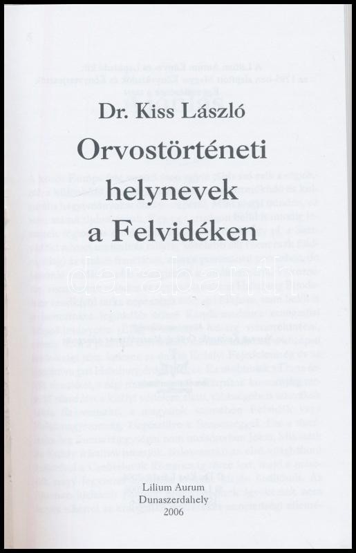 Kiss László: Orvostörténeti helynevek a Felvidéken. Dunaszerdahely, 2006, Lilium Aurum. Kiadói kartonált papírkötés.