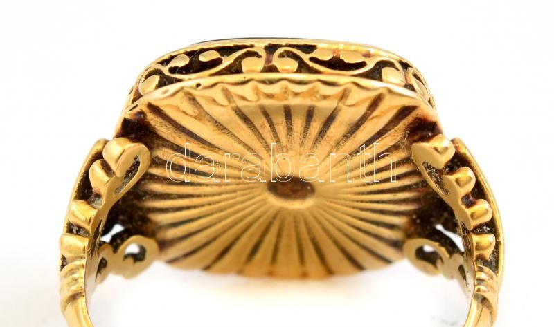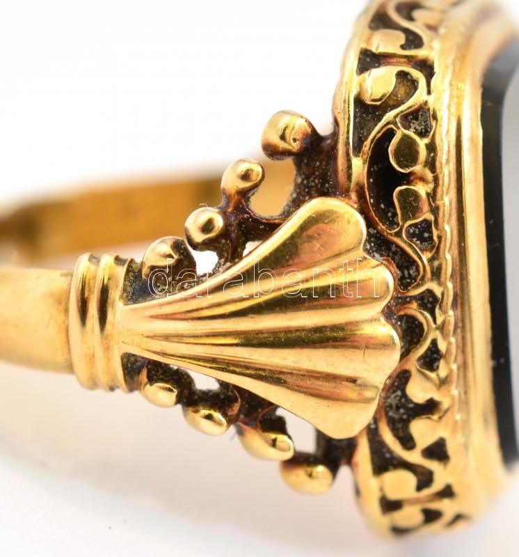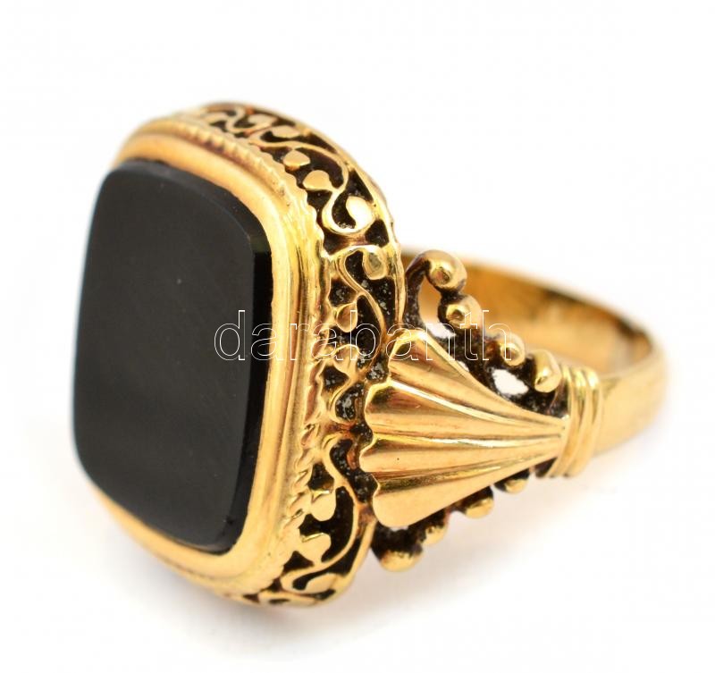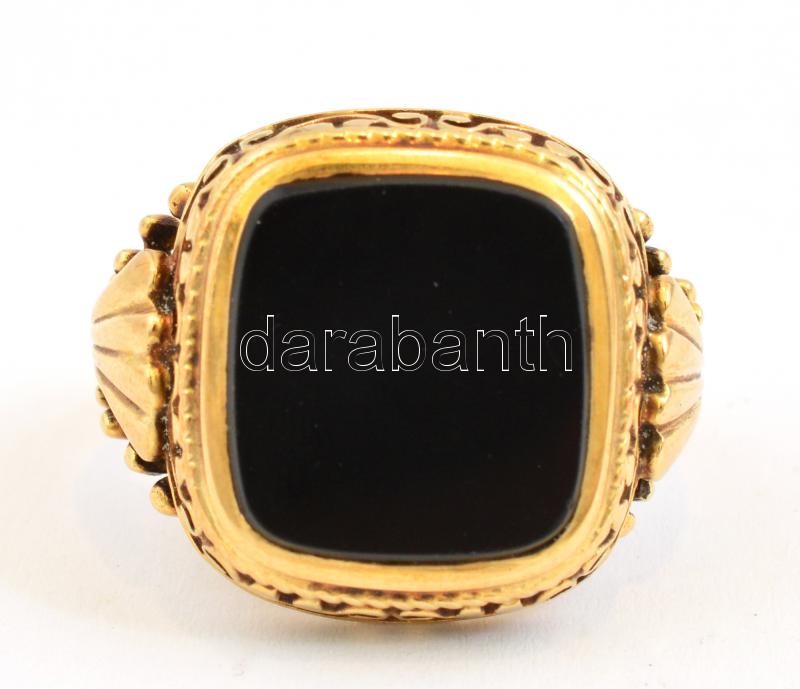 Arany (Au) 14 K gyűrű, ónix kővel, jelzett, méret: 58, bruttó: 11,1 g