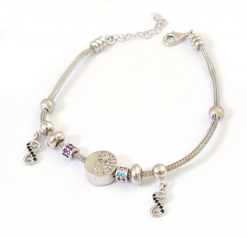 Ezüst(Ag) karkötő charmokkal, jelzett, max. h: 19,5 cm, bruttó: 8,11 g