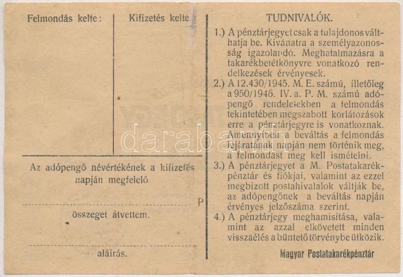 1946. 10.000AP nem kamatozó Pénztárjegy "Másra Át Nem Ruházható" felül...