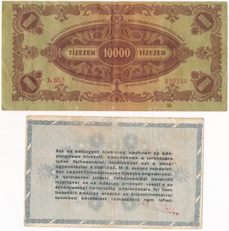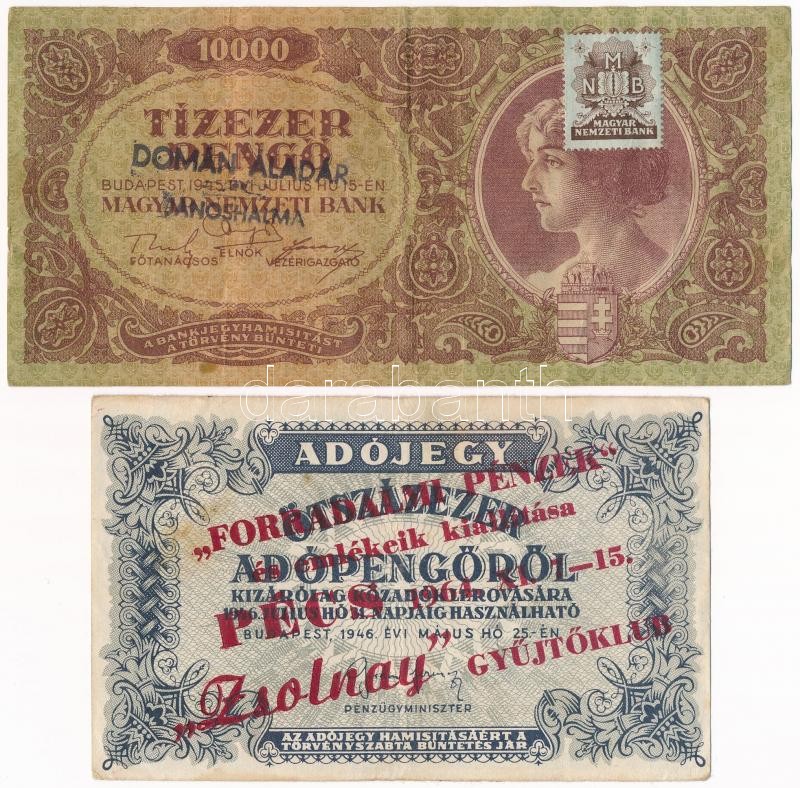 1946. 500.000AP "Forradalmi Pénzek és emlékeik kiállítása Pécs 1964. XI. 7-15. Zsolnay Gyűjtőklub" + 1945. 10.000P "Domán Aladár - Jánoshalma" T:II,III