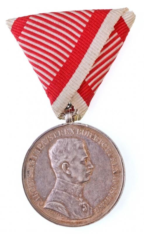 1917. "Károly Ezüst Vitézségi Érem I. osztálya" peremen jelzett Ag kit... https://www.darabanth.com/en/375-Online-auction/375.0/Numismatics/Military~2000017/1917-Karoly-Ezust-Vitezsegi-Erem-I-osztalya-peremen-jelzett-Ag-kituntetes-modern-mellsza~II2197293