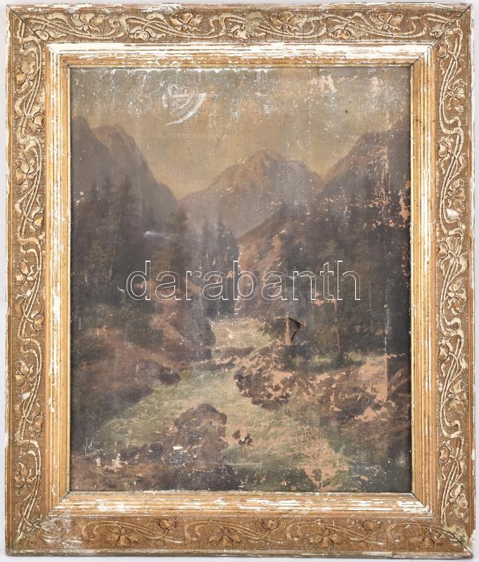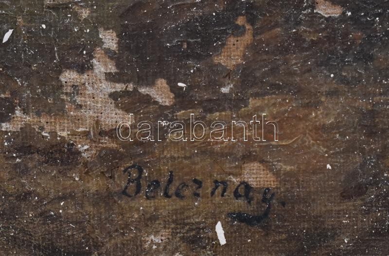 Beleznay jelzéssel: Hegyvidéki táj. Olaj, vászon, sérült.Szecessziós-florális díszítésű, sérült keretben, 69x56 cm