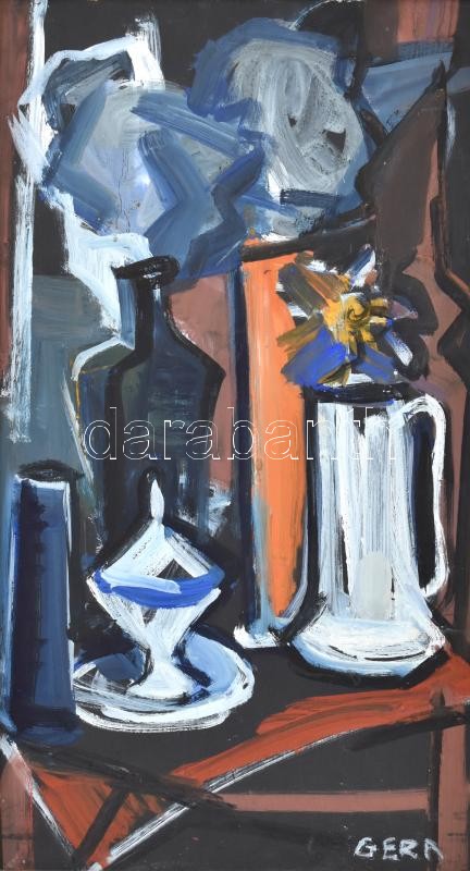Gera Éva(1923-1996): Csendélet. Olaj, farost, jelzett, 60x35 cm Keretb...