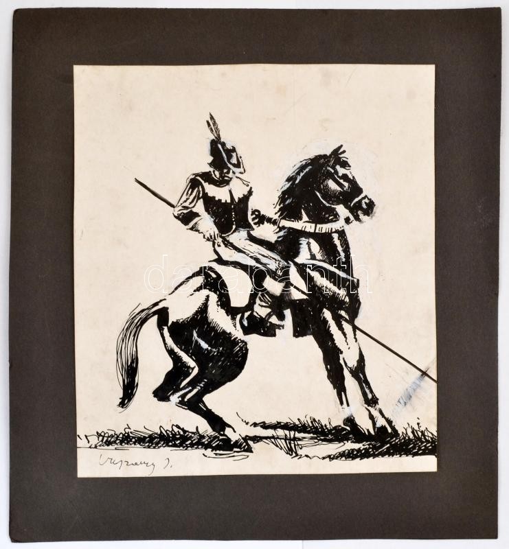 Vaszary jelzéssel: Lovag. Vegyes technika, papír, kasírozva, 28,5x16 c...