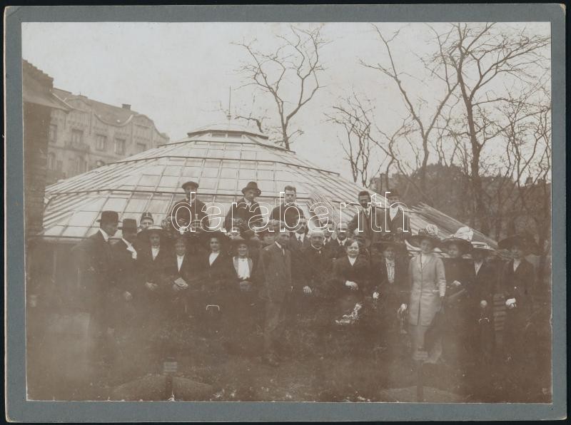 1912 Bp, a fővárosi pedagógiai szeminárium hallgatói (Egyetemi növénykert, Victoria ház előtt), keményhátú fotólap, 16,5x22,5 cm