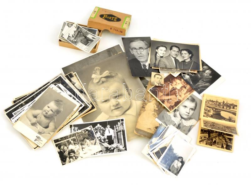 Description: cca 1900-1980 Sok családi fotó, elsősorban portrék és utazások alatt készült felvételek, többségében a XX. sz. közepéről, különböző méretekben, részben kopott