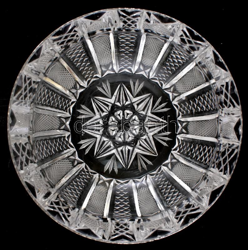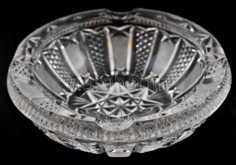 Ólomkristály üveg hamutál, formába öntött, apró kopásokkal, d: 14 cm