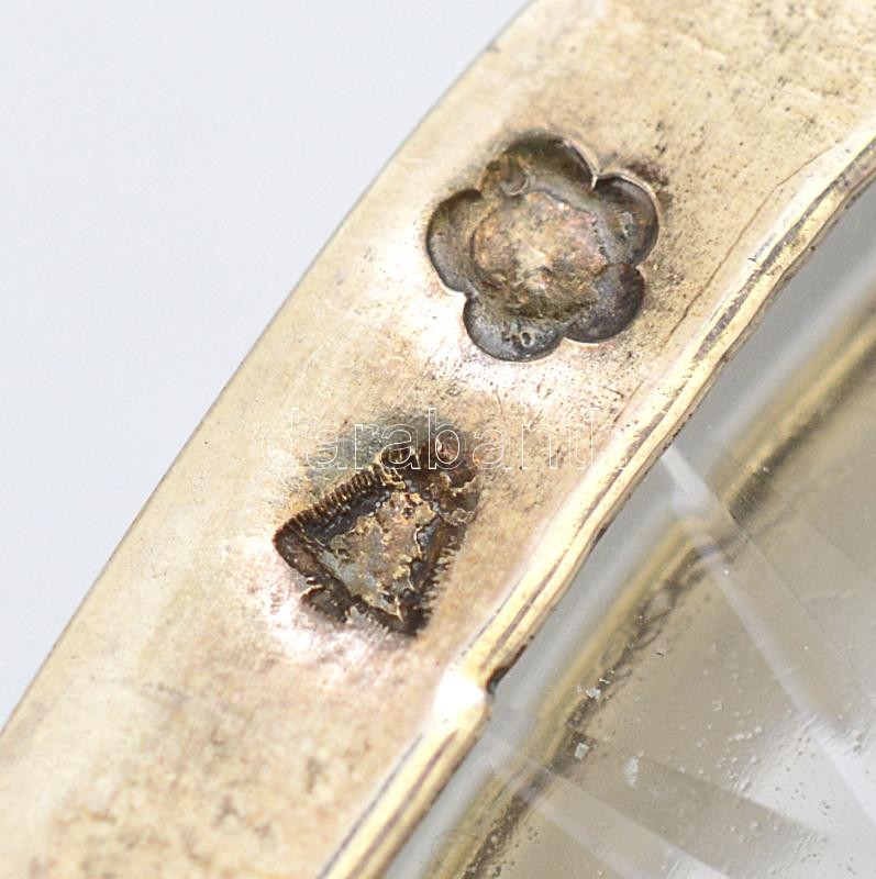 Üveg só/borstartó, ezüst foglalatban, 2 db, jelzett, csorbával, 4x5,5 ...