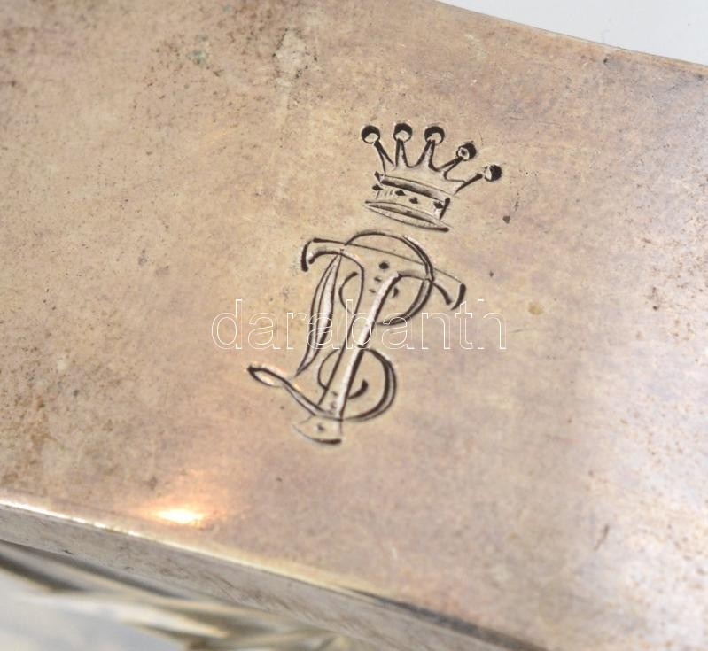 https://www.darabanth.com/en/375-Online-auction/375.0/Porcelain-ceramics-glassware/Glass-objects~500006/Uveg-soborstarto-ezust-foglalatban-2-db-jelzett-csorbaval-4x5-5-cm~II2198390