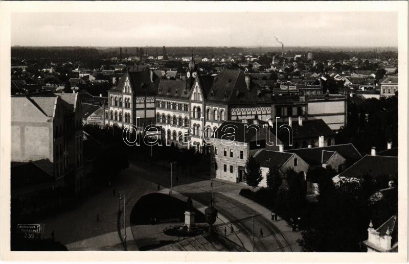 Debrecen, látkép, Református Főgimnázium. "Méliusz" könyvkereskedés ki...