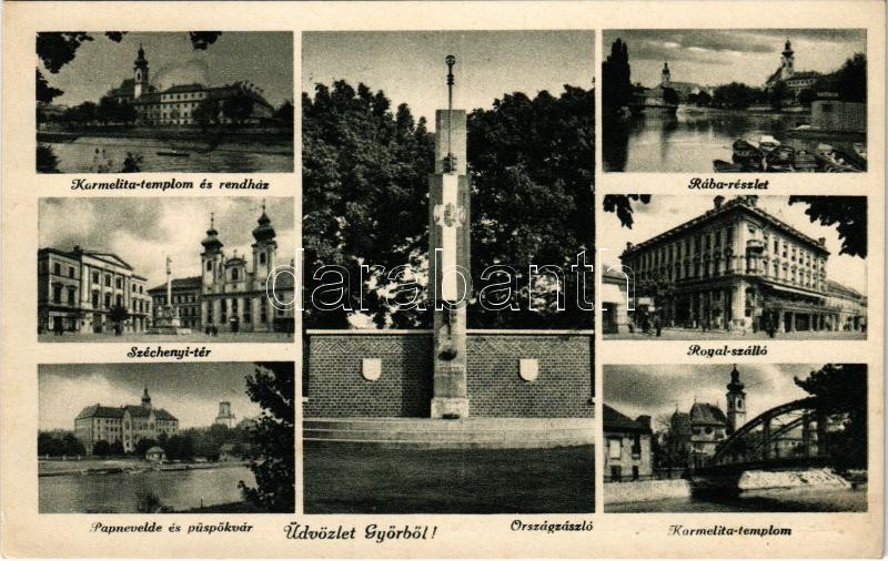 Győr, Karmelita templom és rendház, Széchenyi tér, Papnevelde és Püspökvár, Országzászló, Hotel Royal szálloda