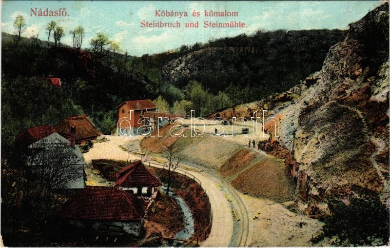 1912 Nádasfő, Rárbok, Rohrbach, Rohozník; Kőbánya és kőmalom. Wiesner A. No. 77a. / Steinbruch und Steinmühle / stone mine and mill