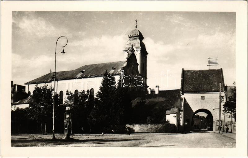 Lőcse, Levoca; utca, benzintöltő állomás, templom / street view, gas o...