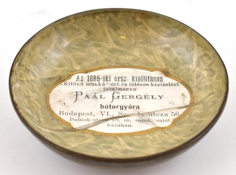 1885 országos kiállításon nyert díj Paál Gergely bútorgyára Bp. Vi. Szondy utca. Üveges tálka. Sérült d: 10 cm
