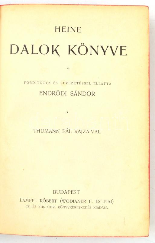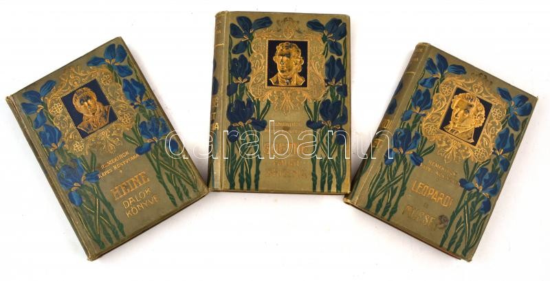 Remekírók képes könyvtára 3 db: Heine - Dalok könyve, Goethe - Faust, Iphigenia, Giacomo Leopardi összes lyrai versei / Alfred de Musset válogatott költeményei. Szerk.: Radó Antal. Bp., é.n., Lampel R. (Wodianer F. és Fiai.) Kiadói aranyozott egészvászon-kötés, kopottas állapotban, kissé sérült gerinccel, festett lapélekkel.