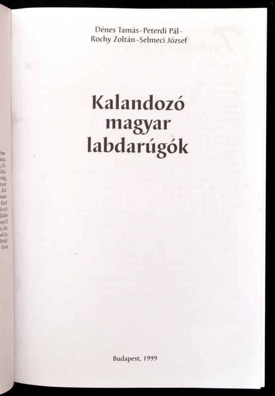 Dénes Tamás-Peterdi Pál-Rochy Zoltán-Selmeci József: Kalandozó magyar ... https://www.darabanth.com/en/376-Online-auction/376.0/Books/Books-Sports-Chess-Alpinism~1000002/Denes-Tamas-Peterdi-Pal-Rochy-Zoltan-Selmeci-Jozsef-Kalandozo-magyar-labdarugok-Bp-1999-~II2207726