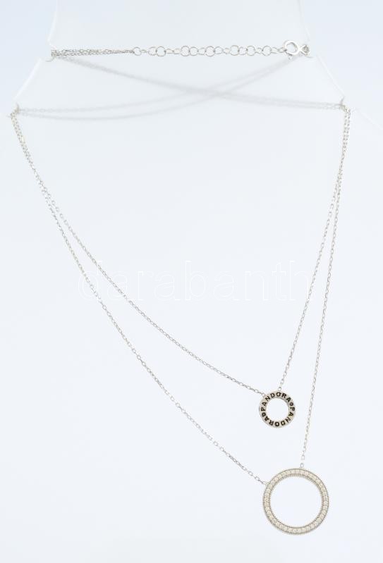 Ezüst(Ag) dupla körös nyaklánc, Pandora jelzéssel, max. h: 42 cm, bruttó: 4,1 g