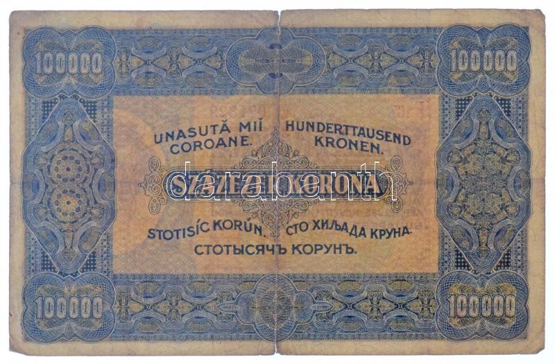 1923. 100.000K "F167 021829" sorszámmal "Orell Füssli Z... https://www.darabanth.com/en/376-Online-auction/376.0/Numismatics/Hungarian-Banknotes~2000007/1923-100000K-F167-021829-sorszammal-Orell-Fussli-Zurich-TIII-kis-szakadasok-Hungary-19~II2207465