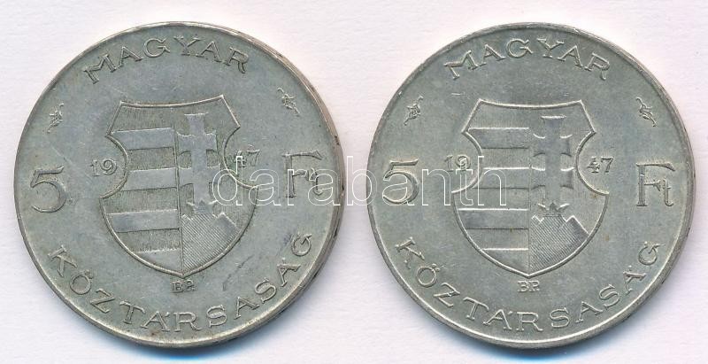https://www.darabanth.com/en/376-Online-auction/376.0/Numismatics/Hungarian-coins-and-coins-with-Hungarian-mint-marks~2000008/1947-5Ft-Ag-Kossuth-2x-T2-Adamo-F81~II2169959