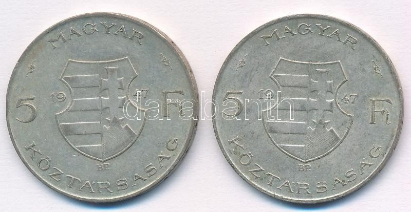 1947. 5Ft Ag "Kossuth" (2x) T:2- kis patina Adamo F8.1