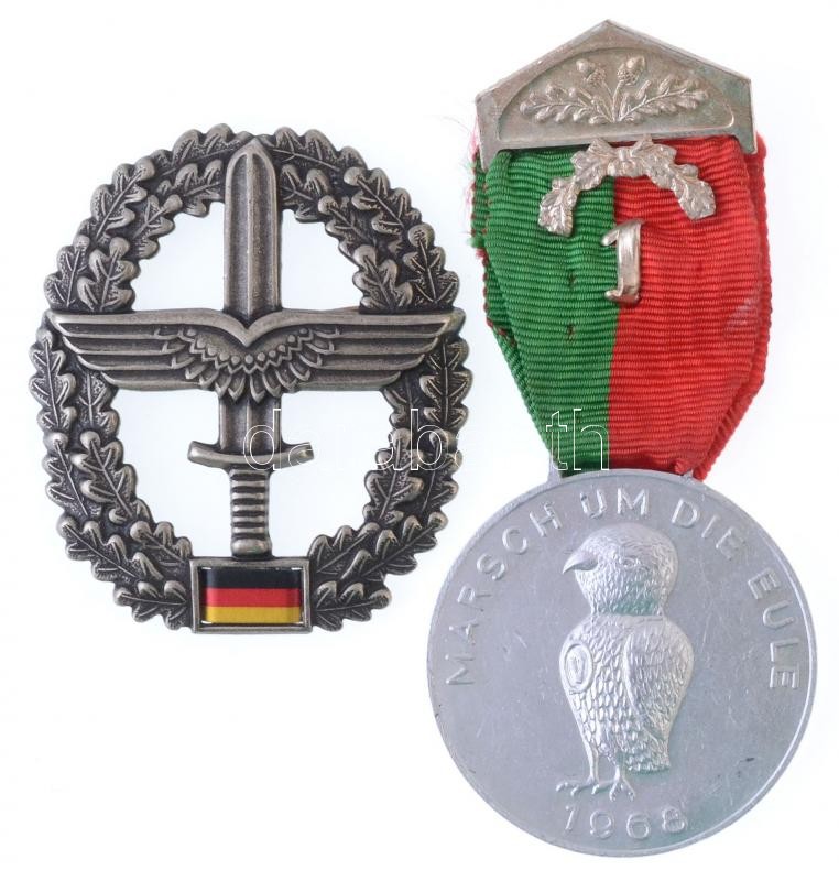 NSZK 1968. "MARSCH UM DIE EULE 1968 / VERBAND DER RESERVISTEN DEN DEUTSCHEN BUNDESWEHR" Al jelvény + ~1970-1980. Bundeswehr Repülős fémjelvény T:1-