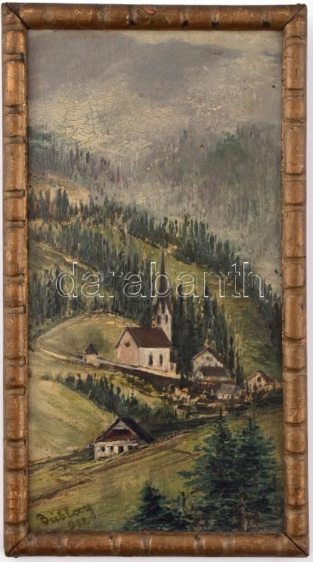 Bublay 932 jelzéssel: Hegyvidéki táj. Olaj, karton, jelzett, fa keretben, 21×11 cm
