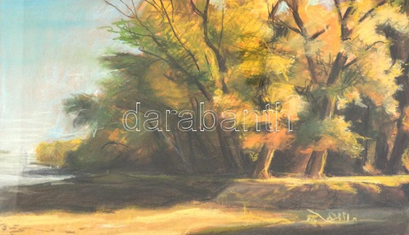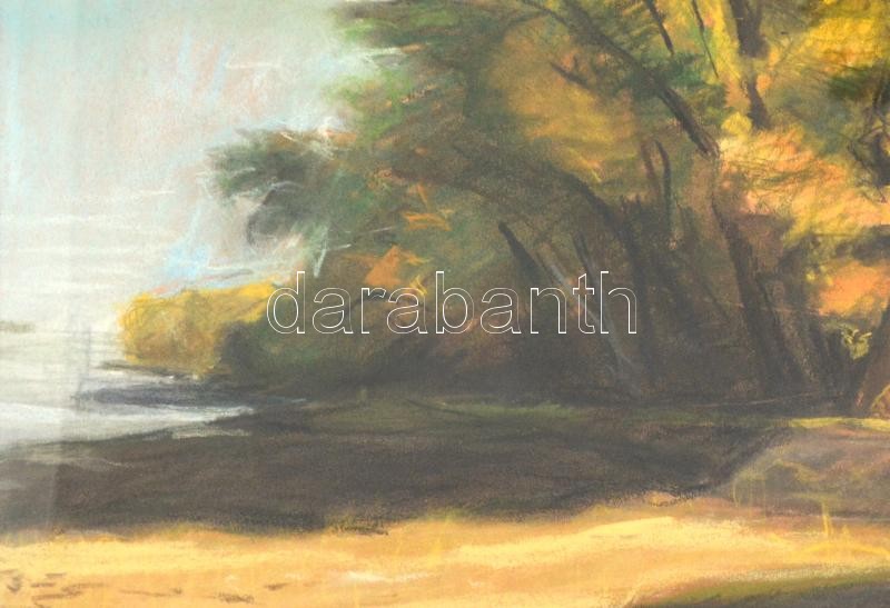 Olvashatatlan jelzéssel: Őszi Dunapart, 2004. Pasztell, papír, hátolda...