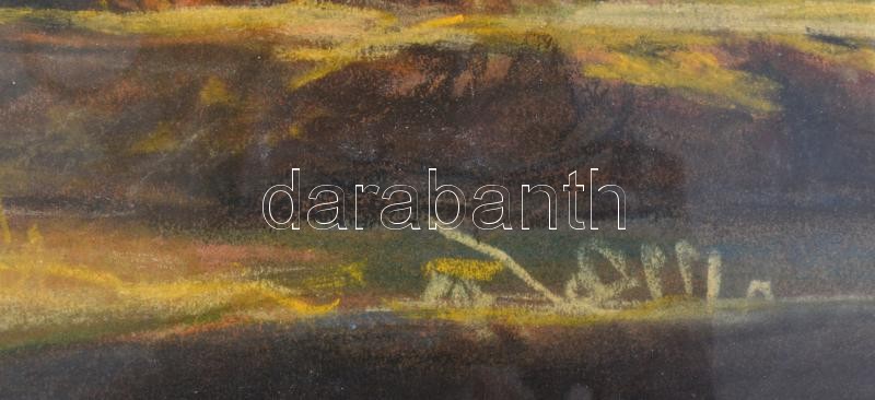 Olvashatatlan jelzéssel: Őszi Dunapart, 2004. Pasztell, papír, hátoldalán jelzett és ajándékozási sorokkal, 27x47 cm