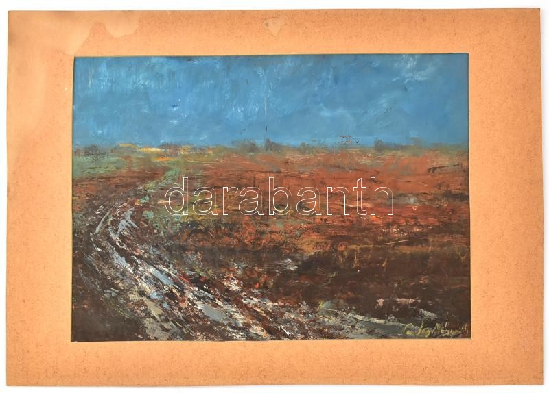 Saly Németh László (1920-2001): Zsennye. Olaj, papír, jelzett, hátoldalán autográf felirattal, paszpartuban, 26×37 cm