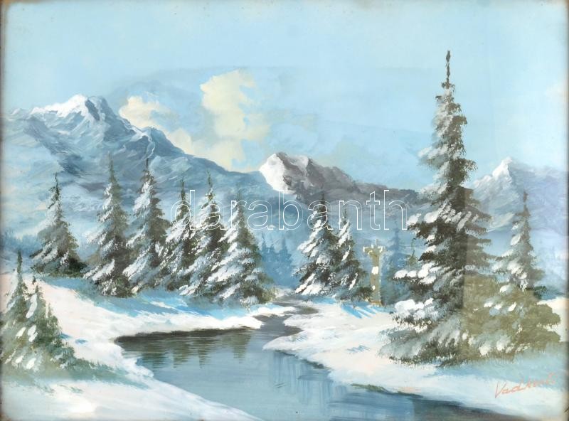 Vadkerti jelzéssel: Téli táj. Tempera, papír, Üvegezett keretben. 25x3...