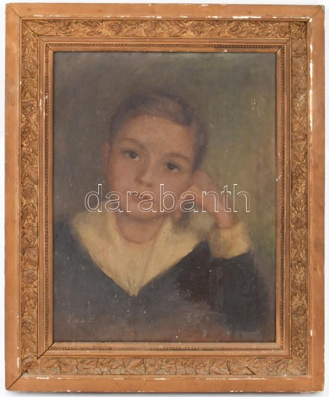 Vida Z 1942 (,) jelzéssel: Kisfiú portréja. Olaj, vászon. Sérült fa keretben, 48×37 cm