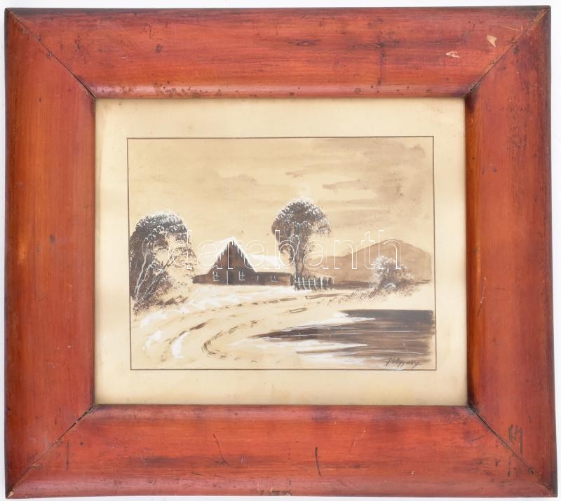 Völgyessy jelzéssel: Behavazott téli táj. Vegyes technika, papír. Üveg...