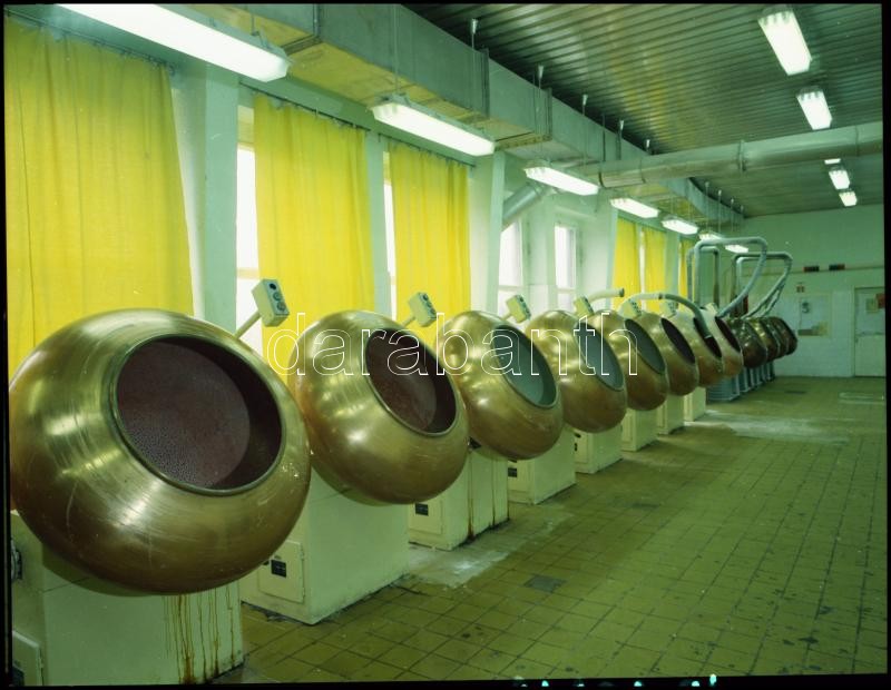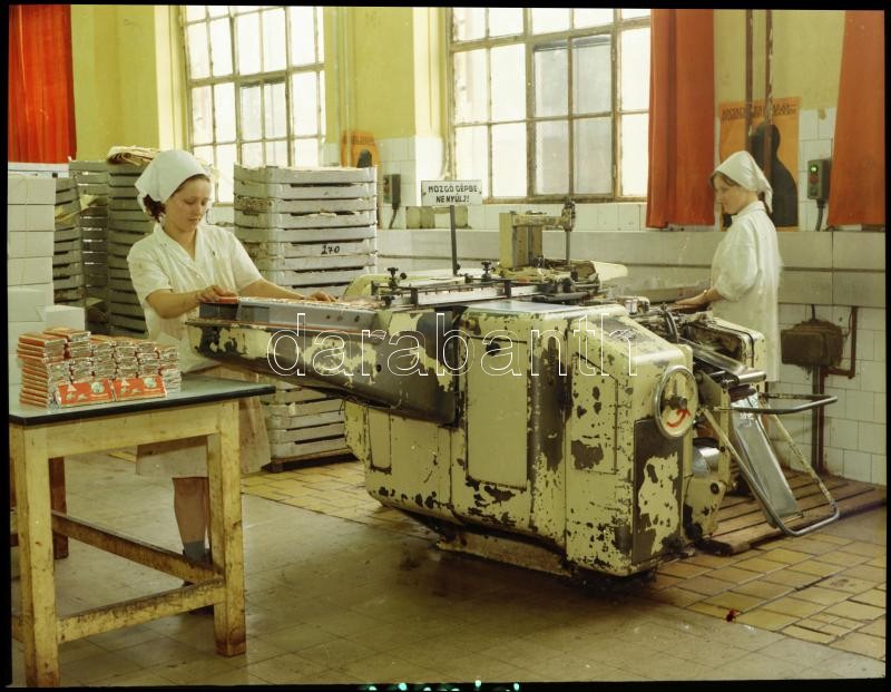 1975 Budapest, képriport a Magyar Édesipar fellegváráról a budafoki úti csokigyárról, 86 db szabadon felhasználható vintage negatív, 6x7 cm