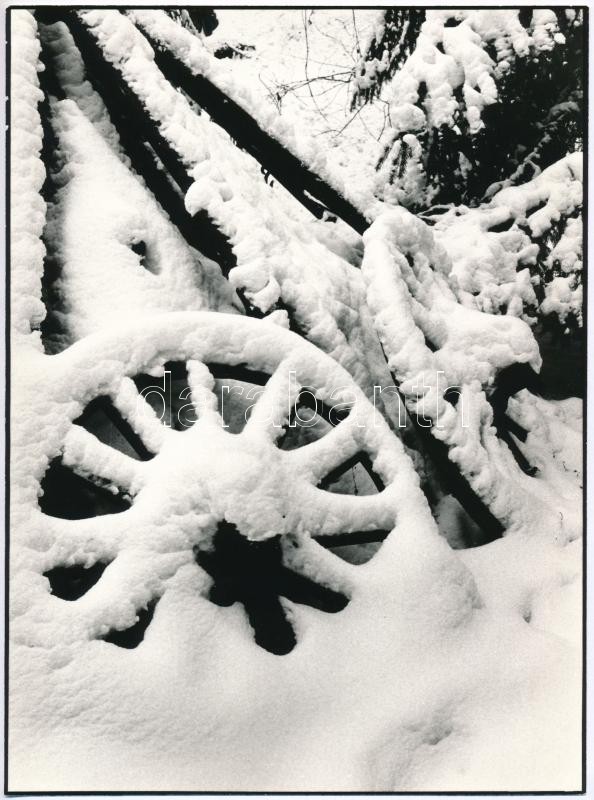 1986 Vincze János (1922-1998) kecskeméti fotóművész hagyatékából, feliratozott vintage fotóművészeti alkotás (Téli csendélet), 23,4x17,3 cm