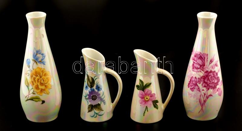 4 db virágos váza, matricás, jelzettek, apró kopásokkal, különböző mér...