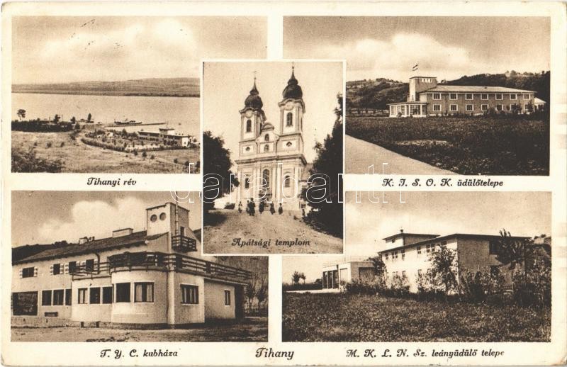 1936 Tihany, Apátsági templom, Tihanyi rév, KISOK üdülőtelepe, TYC klubháza, MKLNSZ leányüdülő telepe (EK)