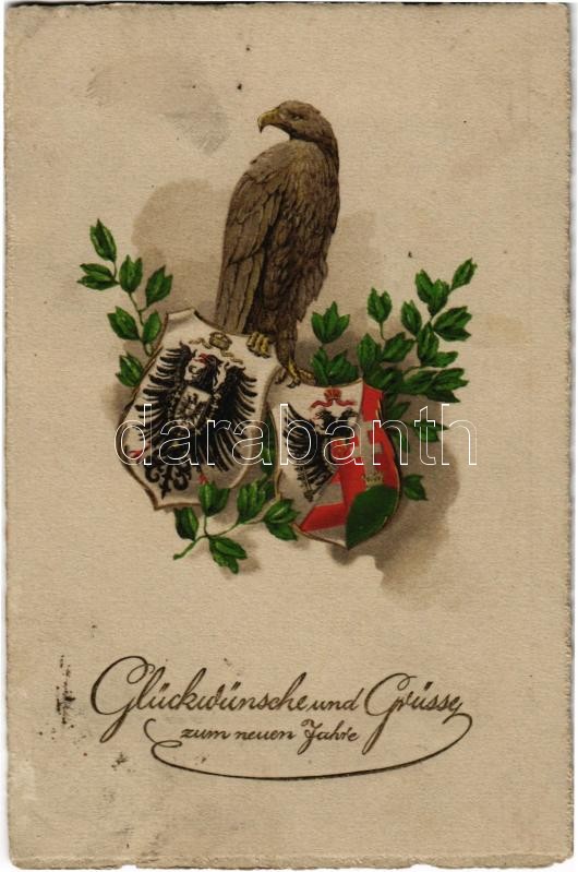 1915 Glückwünsche und Grüsse zum neuen Jahre / WWI German and Austro-Hungarian K.u.K. military, New Year greeting, Viribus Unitis propaganda