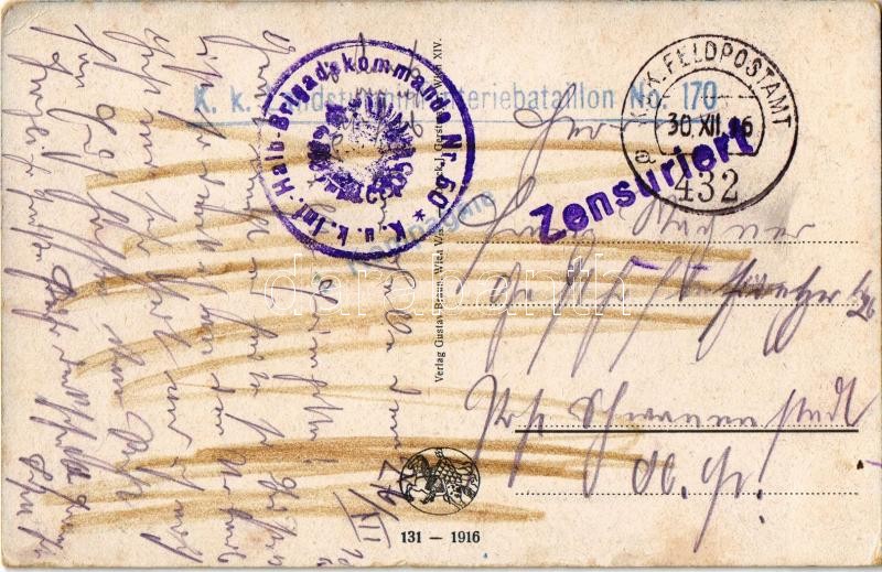 1916 Gefährlicher Patrouillenritt / WWI Austro-Hungarian K.u.K. military, patrol ride + "K. k. Landsturminfanteriebataillon No. 170." "K.u.K. Inf. Halb-Brigadekommando Nr. 60." "K.u.K. Feldpostamt 432." (EK)