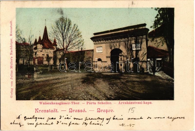 1902 Brassó, Kronstadt, Brasov; Árvaház utcai kapu. Julius Müller's Nachfolger / Weisenhausgässertor / Orphanage street gate
