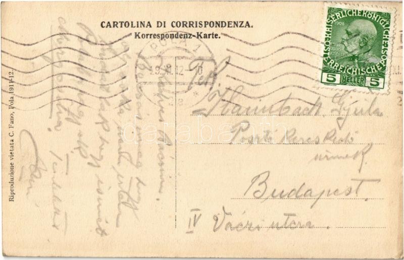 1912 SMS Erzherzog Friedrich az Osztrák-Magyar Haditengerészet pre-dreadnought (Linienschiffe) csatahajója / Austro-Hungarian Navy, K.u.K. Kriegsmarine, pre-dreadnought battleship SMS Erzherzog Friedrich. C. Fano, Pola 1911-12.