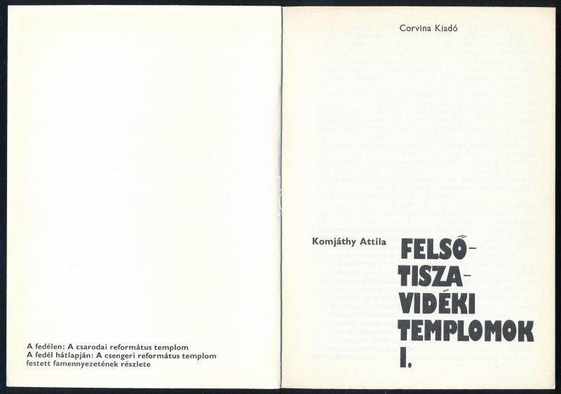 Komjáthy Attila: Felső-Tiszavidéki templomok I. Fekete-fehér fotókkal. Bp., 1983, Corvina. Kiadói papírkötésben.