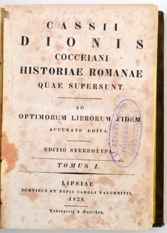 Cassii Dionis Cocceiani Historiae Romanae quae supersunt. 1. köt. Lipc... https://www.darabanth.com/en/377-Online-auction/377.0/Books/Books-Other-languages~500016/Cassii-Dionis-Cocceiani-Historiae-Romanae-quae-supersunt-1-kot-Lipcse-1829-Karl-Tauchnitz-Kop~II1473899