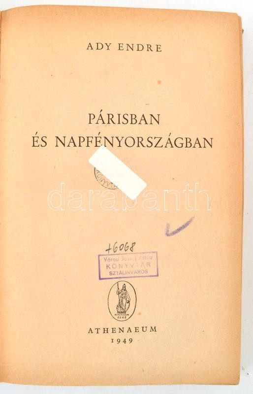 Ady Endre: Párisban és napfényországban. Sajtó alá rendezte: Földessy ... https://www.darabanth.com/en/377-Online-auction/377.0/Books/Books-Other-rarities~500019/Ady-Endre-Parisban-es-napfenyorszagban-Sajto-ala-rendezte-Foldessy-Gyula-Ady-Endre-ossze~II2172565