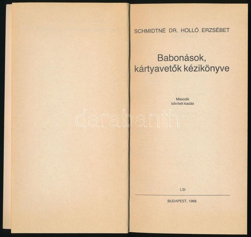 Schmidtné Dr. Holló Erzsébet: Babonások, kártyavetők, kézikönyve. Bp.,... https://www.darabanth.com/en/377-Online-auction/377.0/Books/Books-Other-rarities~500019/Schmidtne-Dr-Hollo-Erzsebet-Babonasok-kartyavetok-kezikonyve-Bp-1988-LSI-Masodik-~II2187216