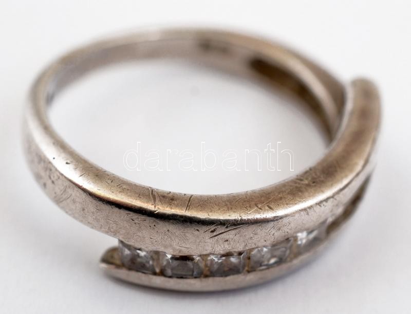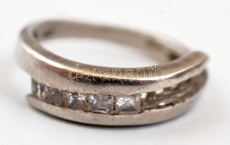 Ezüst(Ag) gyűrű, cirkónia kövekkel, jelzett, méret: 54, bruttó: 3,27 g